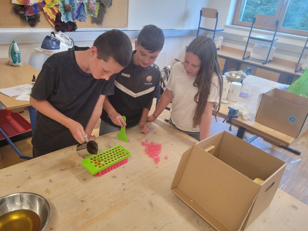 In der Projektarbeit im Werkunterricht wurden bereits Lippenbalsam, Marmelade, Schneidebretter und Armbänder hergestellt, dabei wurde auch mit Ton gearbeitet. Die Motivation ist hoch und alle haben Spaß.“