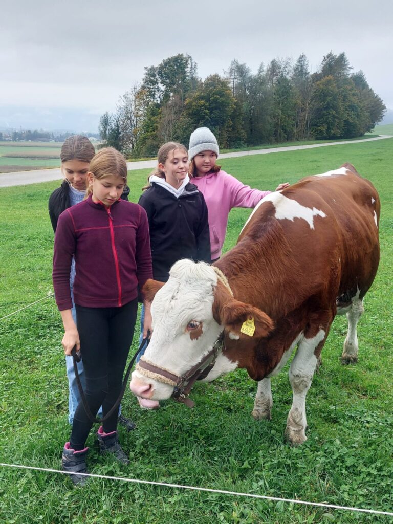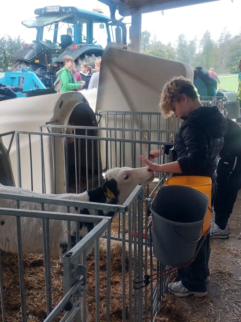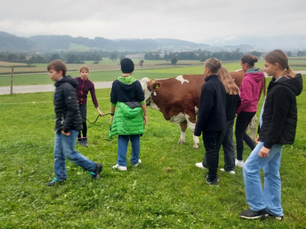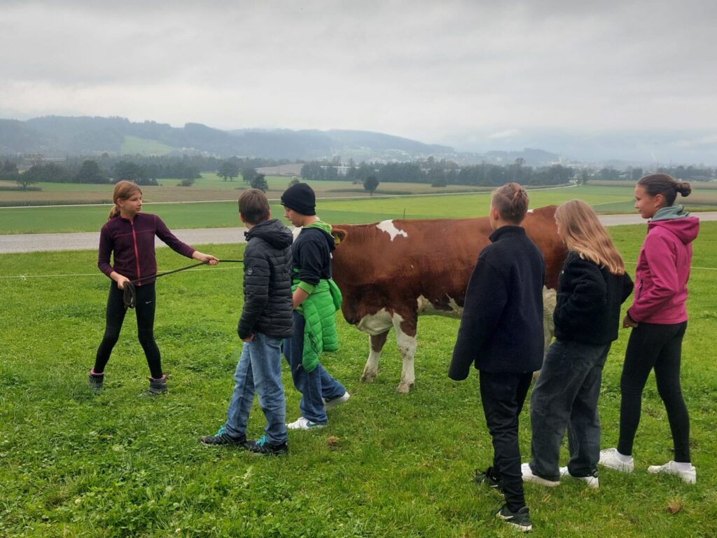 Im Rahmen des Turnunterrichts besuchen wir den Hof der Familie Radinger in Unterlangkampfen.