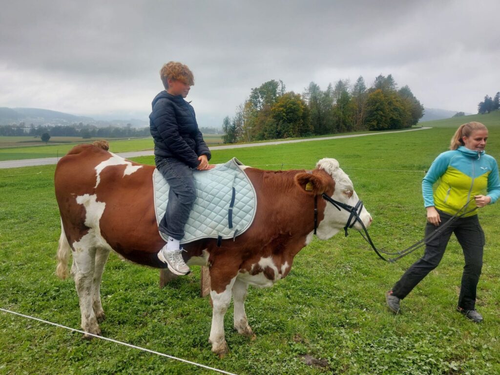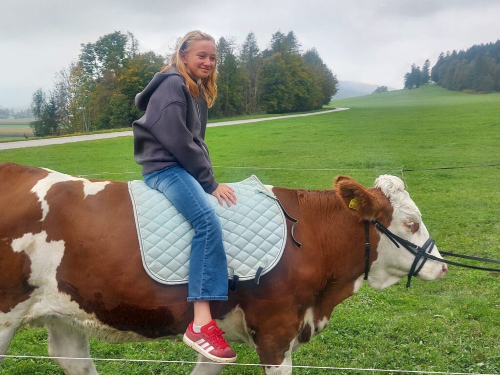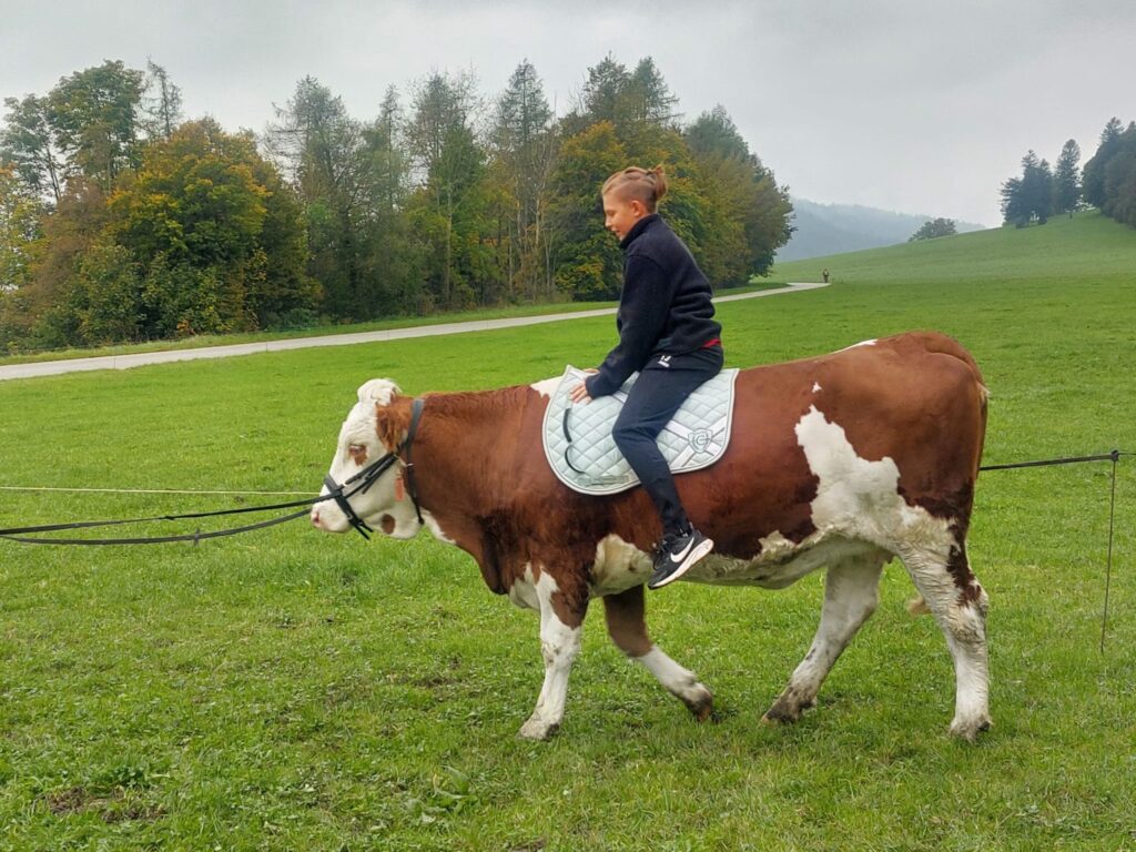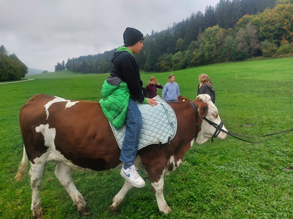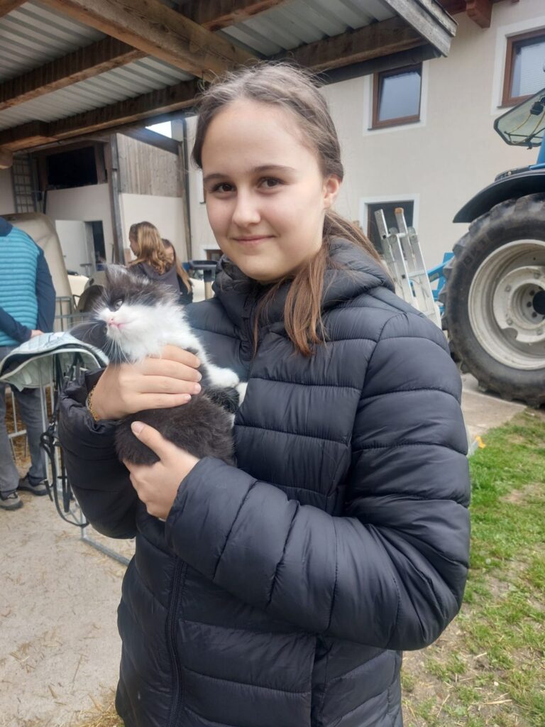 Im Rahmen des Turnunterrichts besuchen wir den Hof der Familie Radinger in Unterlangkampfen.