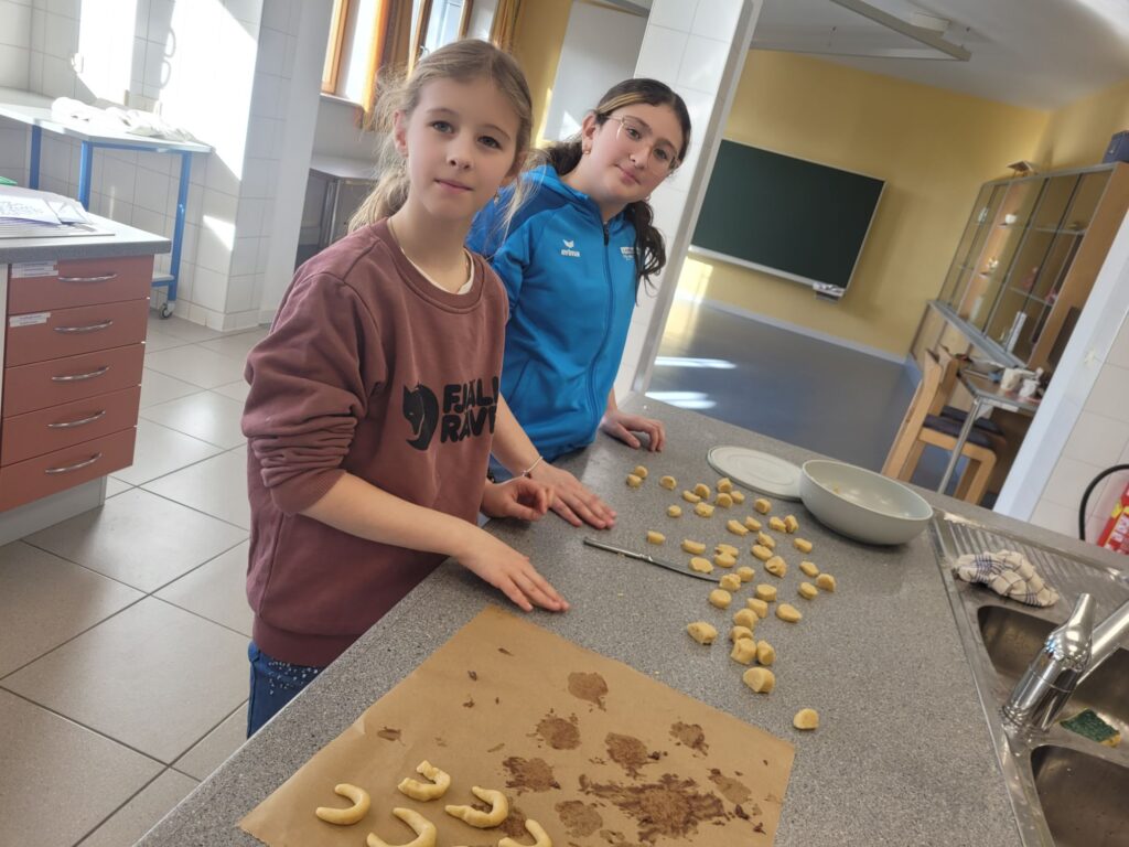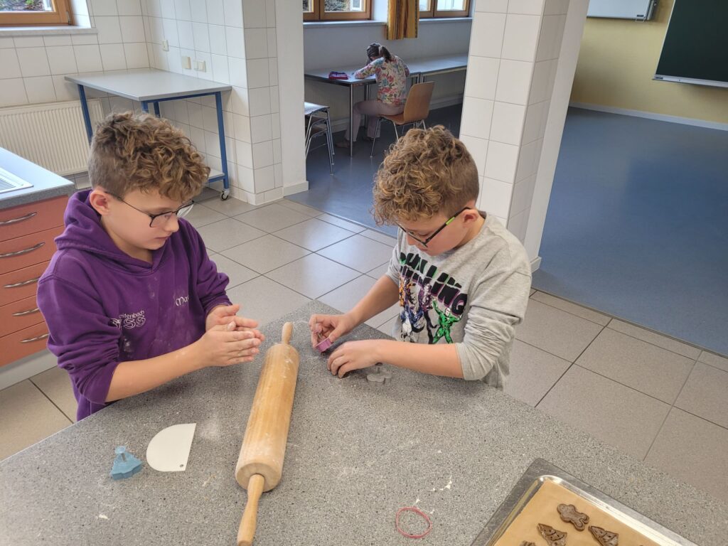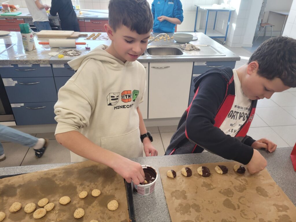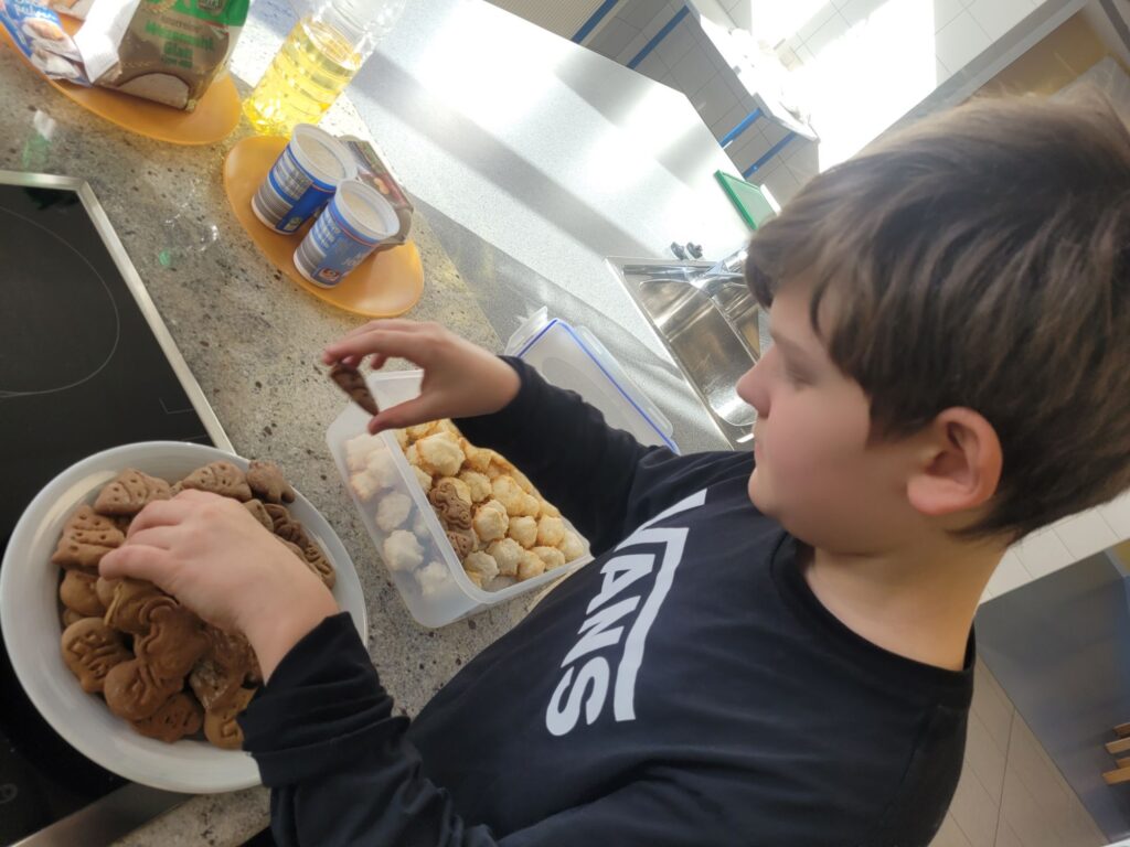 Die ersten Klassen haben gemeinsam Kekse gebacken. Die Kekse sind sehr lecker geworden, und es gab viel Freude beim Backen. So können die eigens angefertigten Tonteller sinnvol benutzt werden.