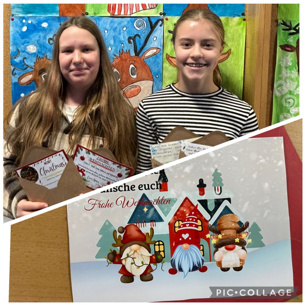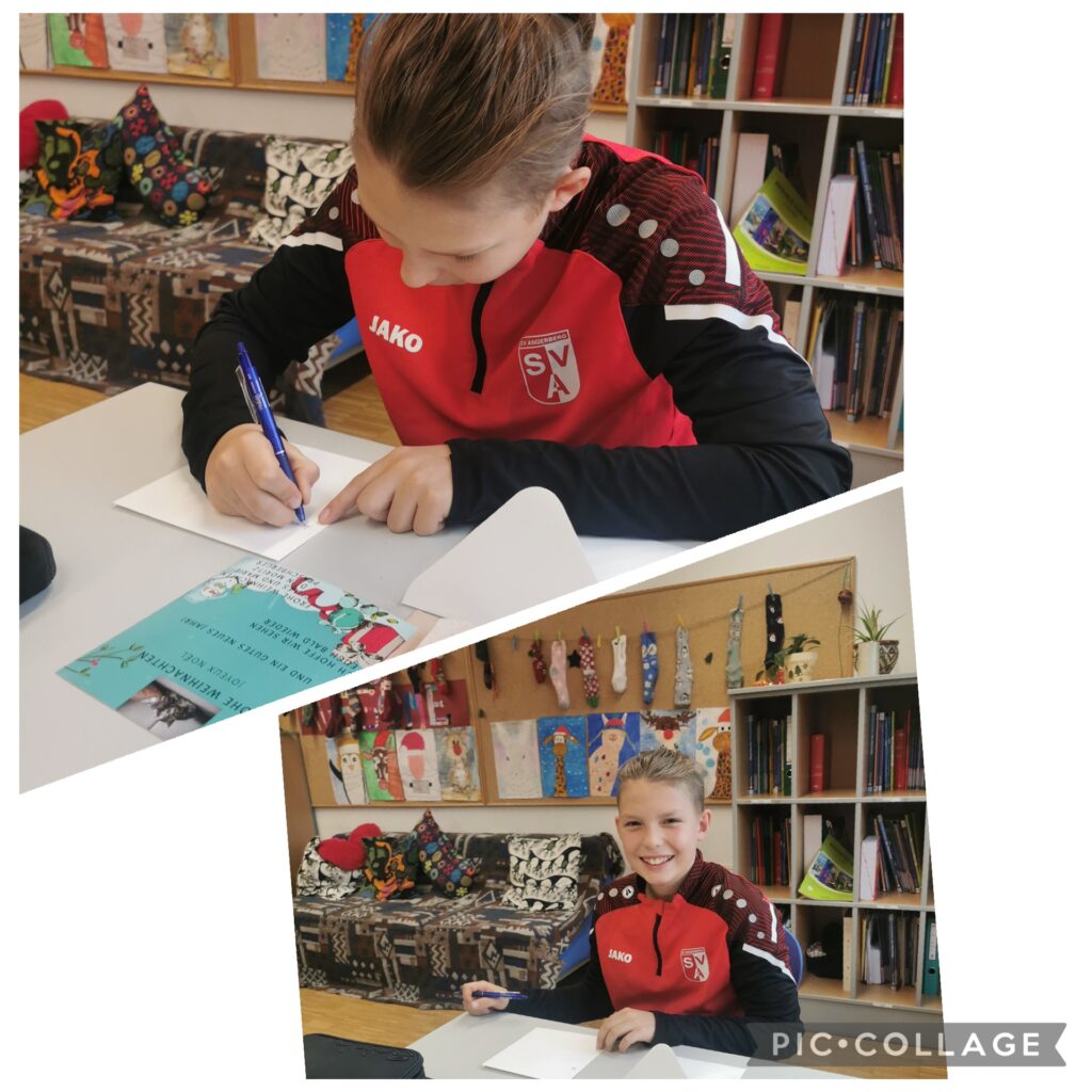 Im DIGI Unterricht gestalteten die Schülerinnen und Schüler ihre Weihnachtskarten mit Canva. Gleichzeitig wurde im Deutschunterricht das richtige Beschriften von Briefen geübt.