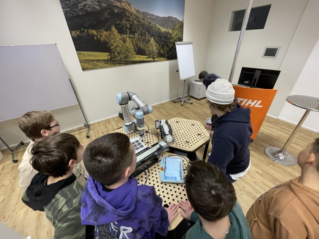 Zehn Schüler*innen der Klassen 3a und 3b durften an einem spannenden Robotik-Workshop teilnehmen. Gemeinsam mit zwei Studenten der Fachhochschule MCI (Fachbereich Mechatronik) erlebten sie in den Räumlichkeiten der Firma STIHL einen praxisnahen Einblick in die Welt der Automatisierung.
