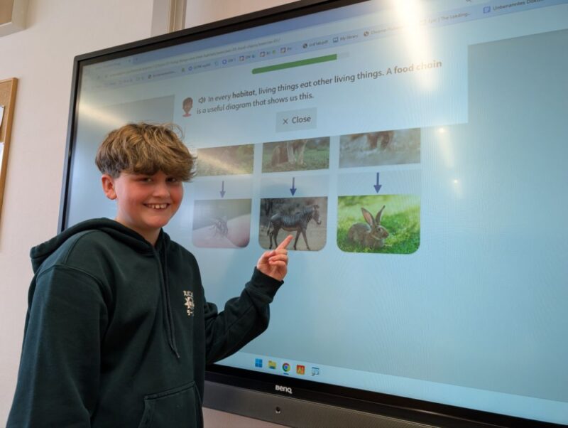 Students have been using the English-language modules on the Anton.app. This interactive platform allows them to visualize habitat relationships and test their knowledge of “who eats what” through engaging digital exercises.