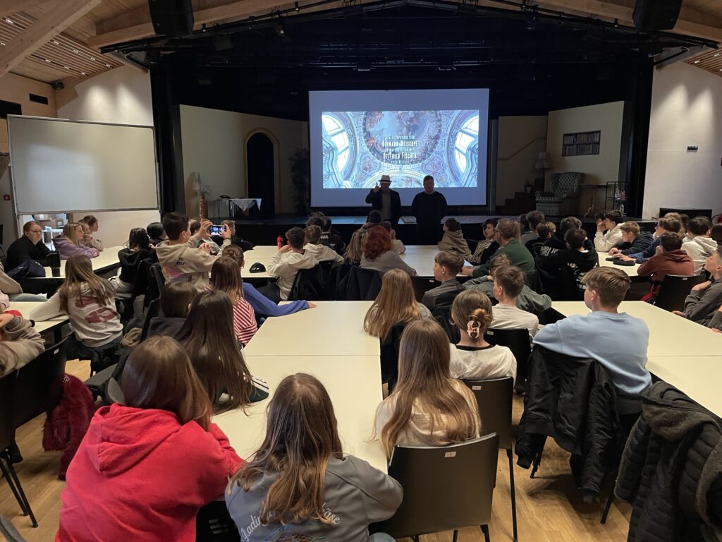 Die Schüler*innen verfolgten die Filmvorführung mit großem Interesse und nutzten anschließend die Gelegenheit, Fragen an den Regisseur zu stellen. Hermann Weiskopf erzählte dabei anschaulich, wie wichtig es ihm war, die Geschichte von Otto Neururer für junge Menschen verständlich und berührend aufzubereiten.